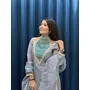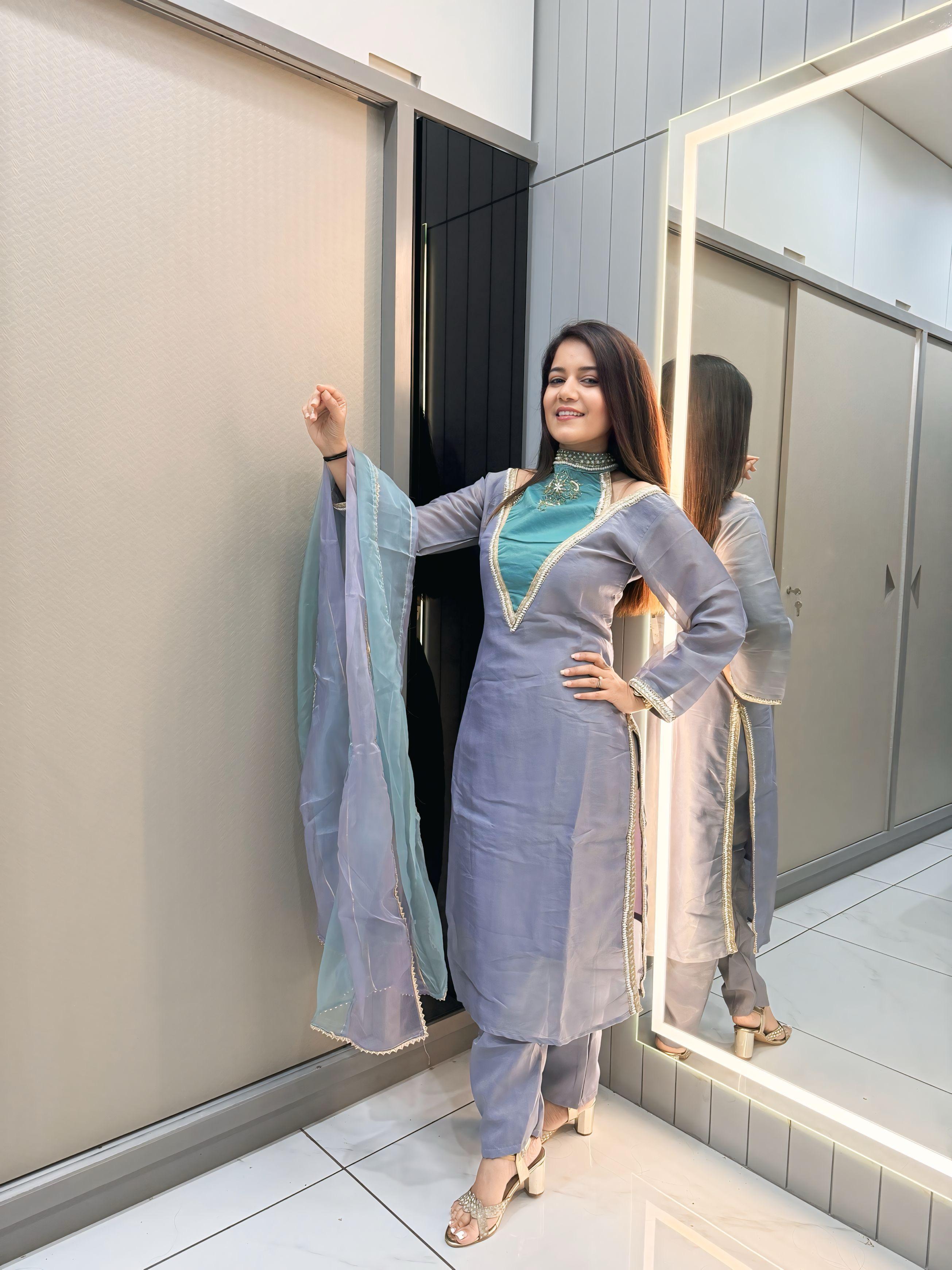 Blue Roman Shimmer Readymade Kurti Set with Designer Handwork