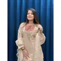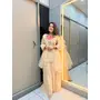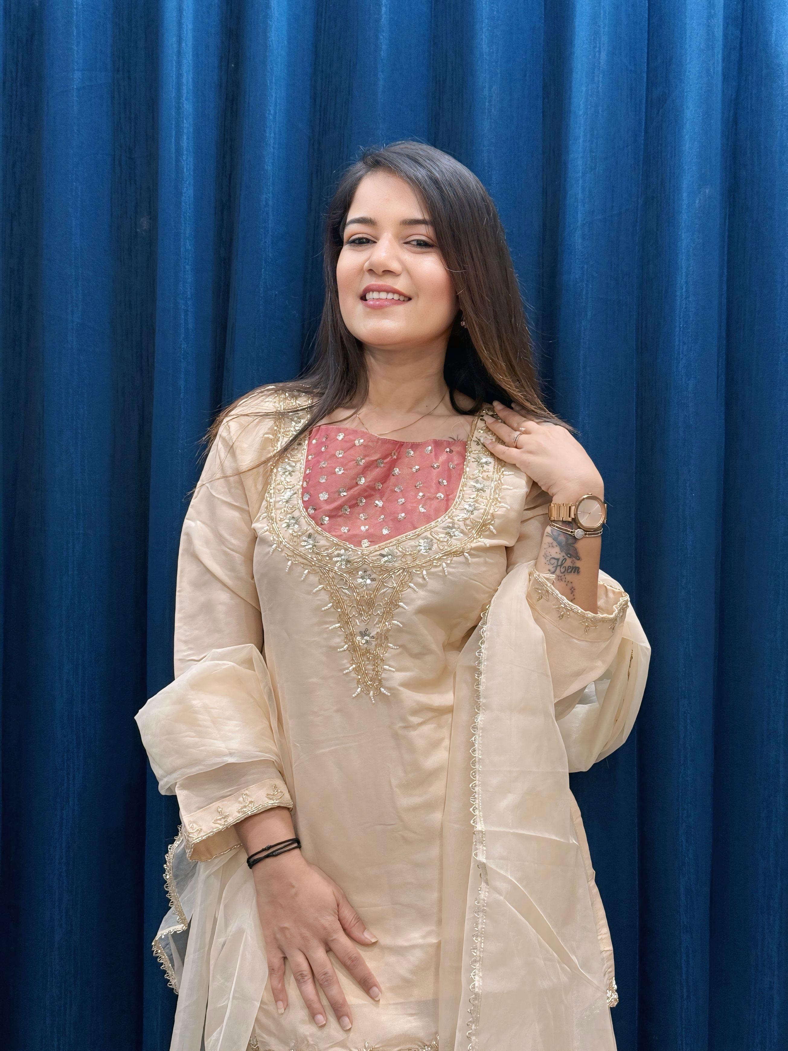 Cream Roman Shimmer Readymade Kurti Set with Handwork & Moti Work