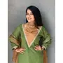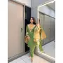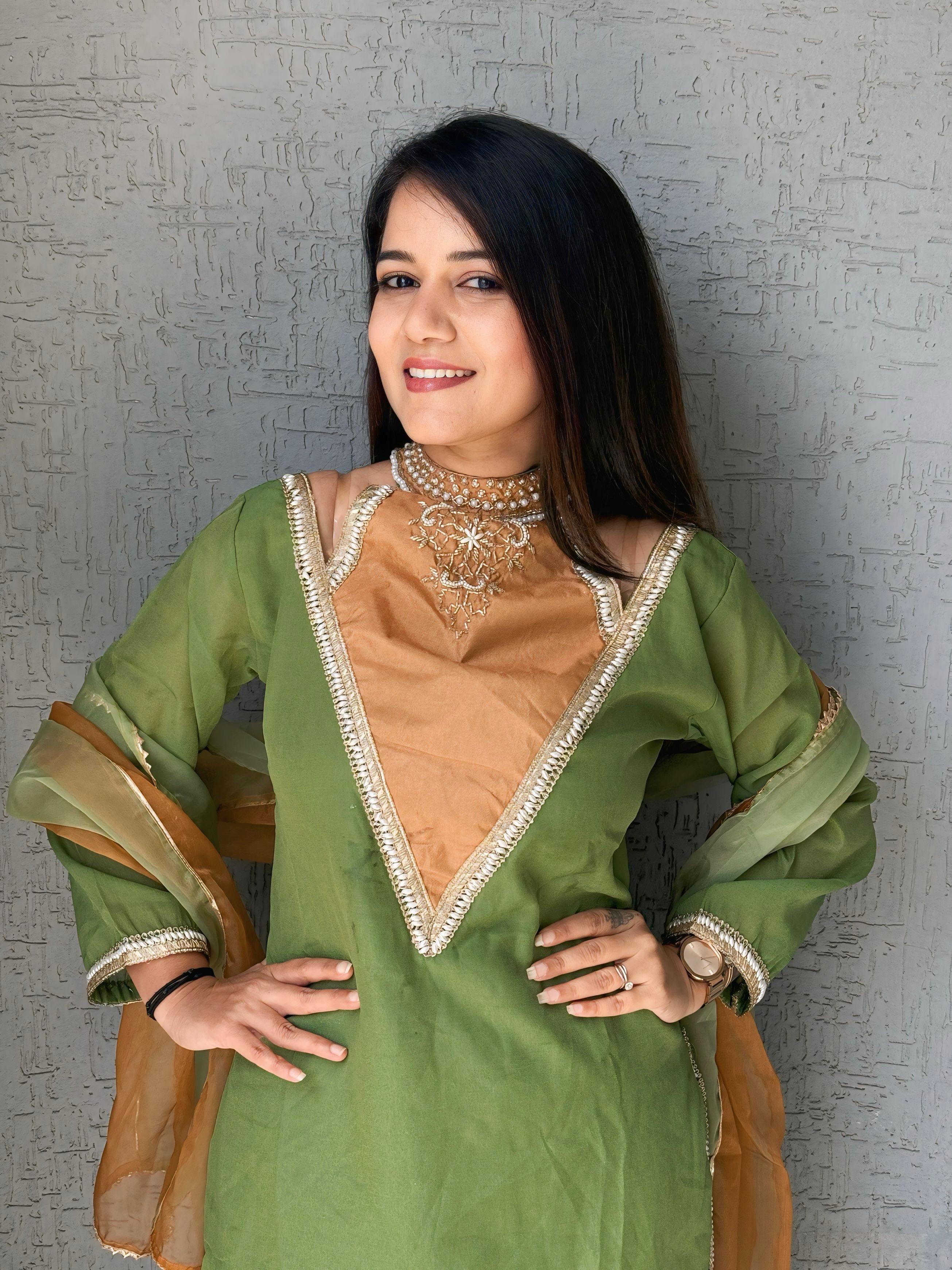 Parrot-Green Roman Shimmer Readymade Kurti Set with Designer Handwork