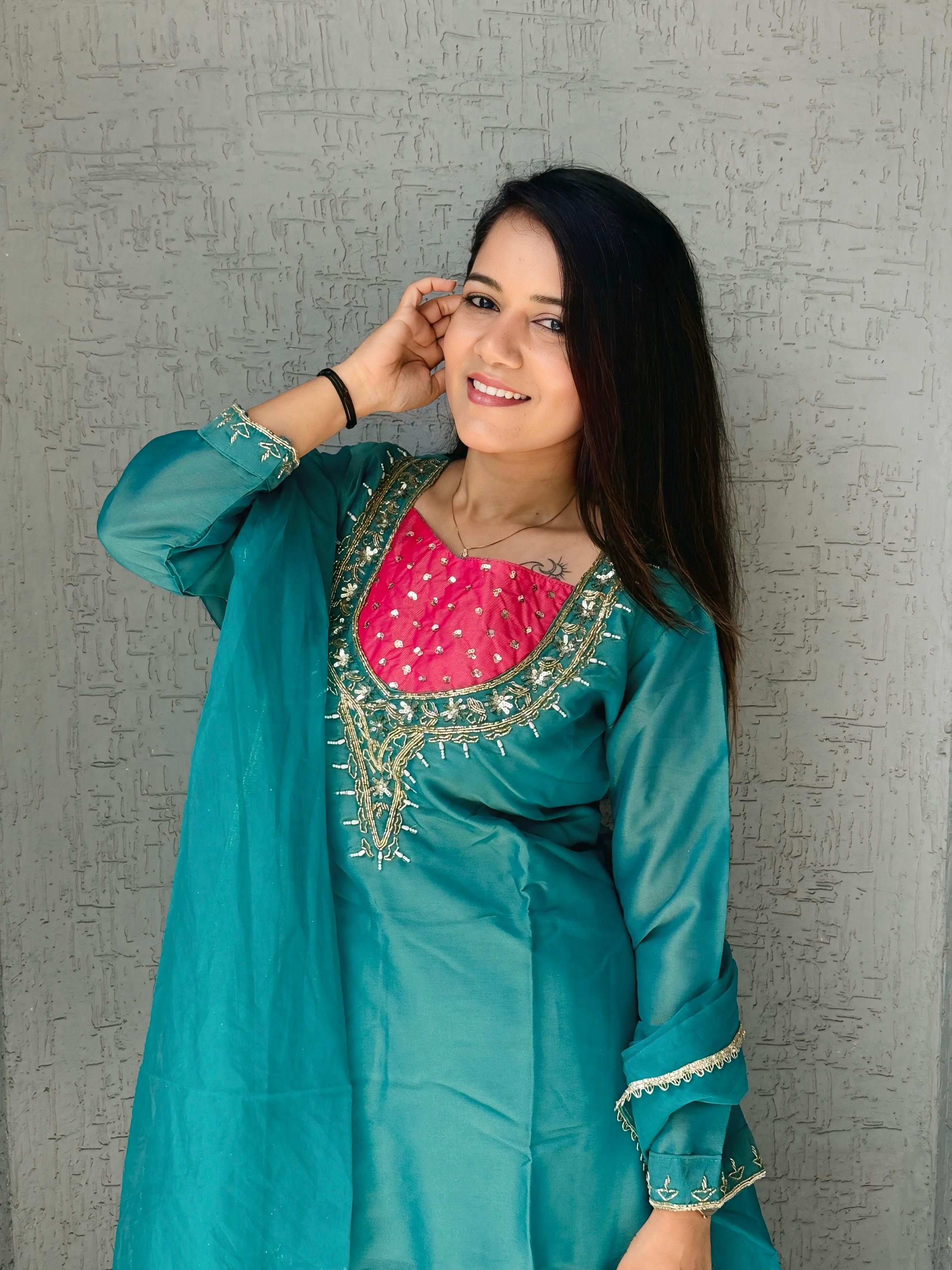 Anaita presents a beautifully crafted ethnic wear collection designed to add grace and elegance to your wardrobe. Made from carefully selected premium fabrics, each outfit offers a comfortable fit with a rich and stylish appearance. The designs are enhanced with fine embroidery, sequins, thread work, mirror work, or subtle hand embellishments that create a refined ethnic look without being heavy.Perfect for festivals, weddings, parties, family functions, and special occasions, these outfits are easy to style and suitable for both day and evening wear. Whether you prefer a modern designer touch or a traditional ethnic feel, Anaita outfits are created with attention to detail and quality finishing to ensure long-lasting wear and timeless appeal.