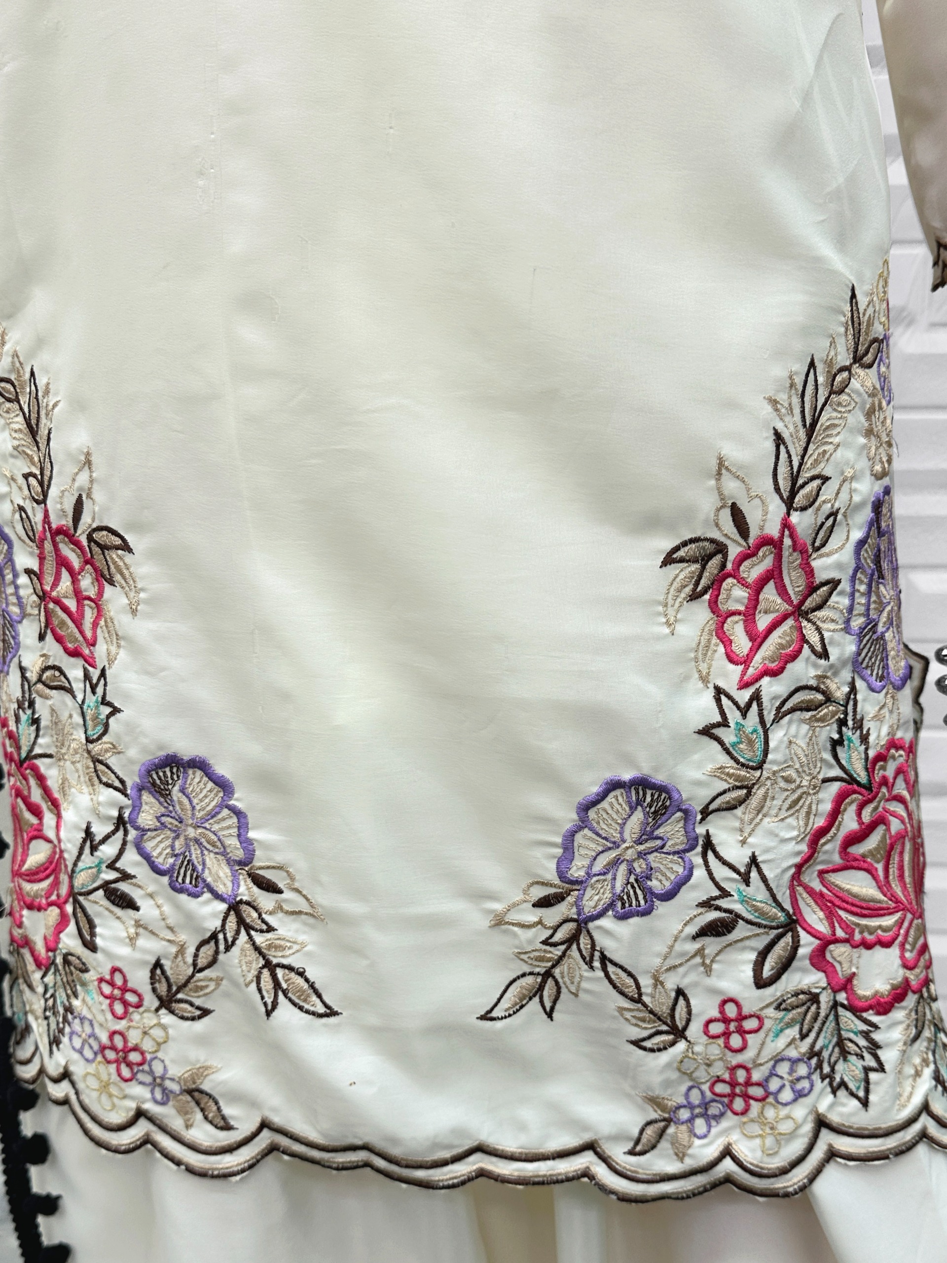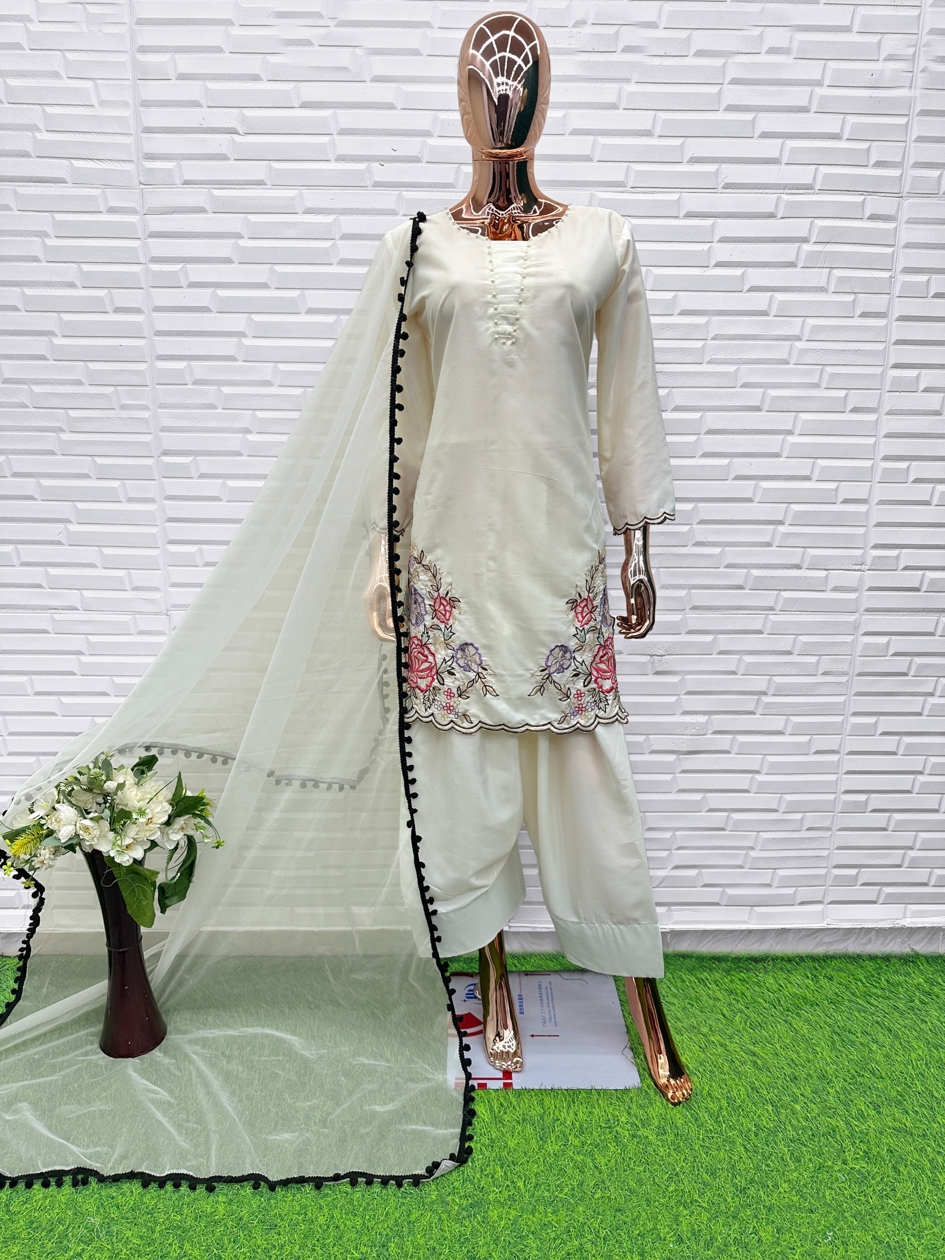 White Crape Readymade Salwar Suit with Embroidery & Sequence Work