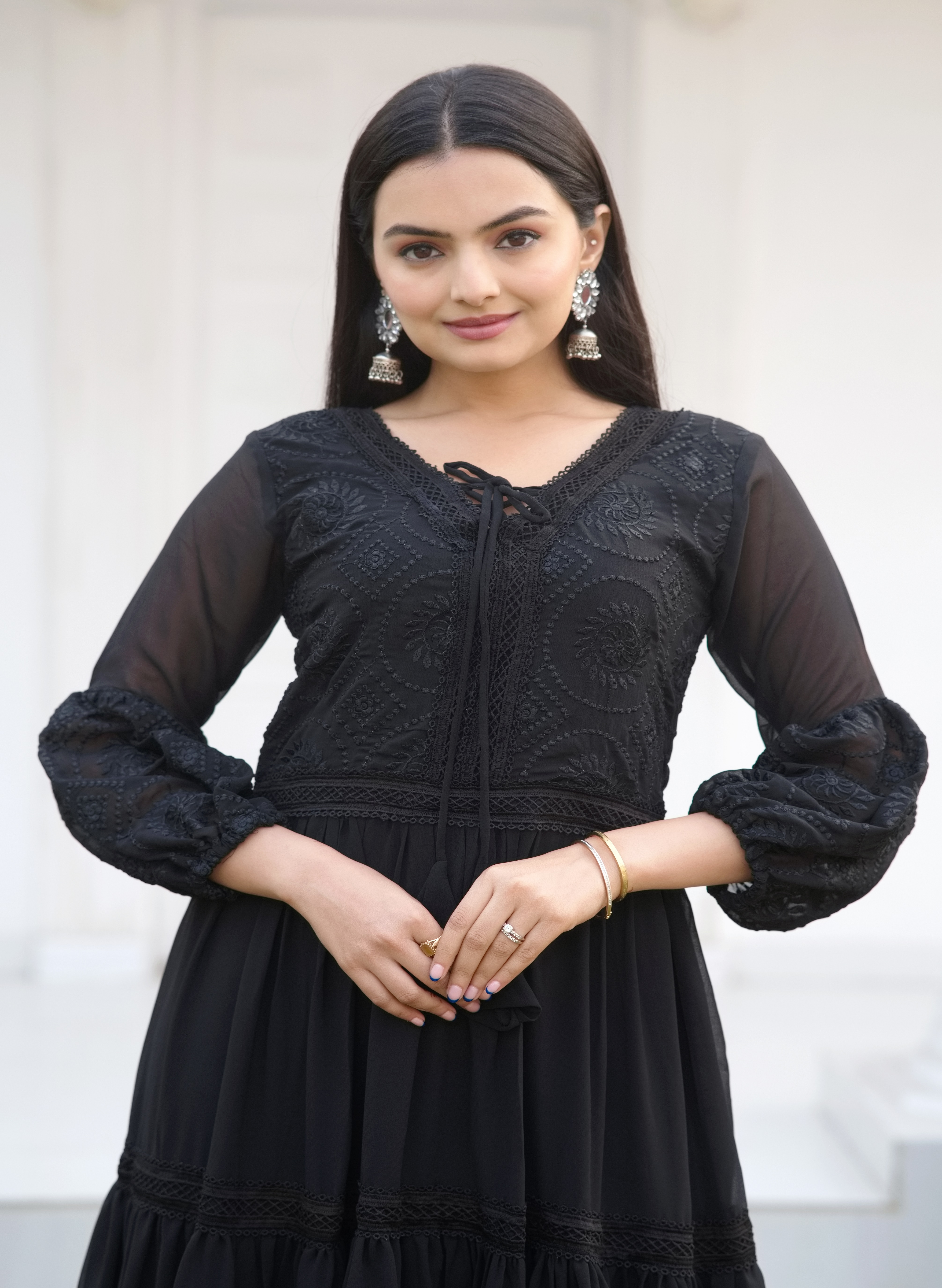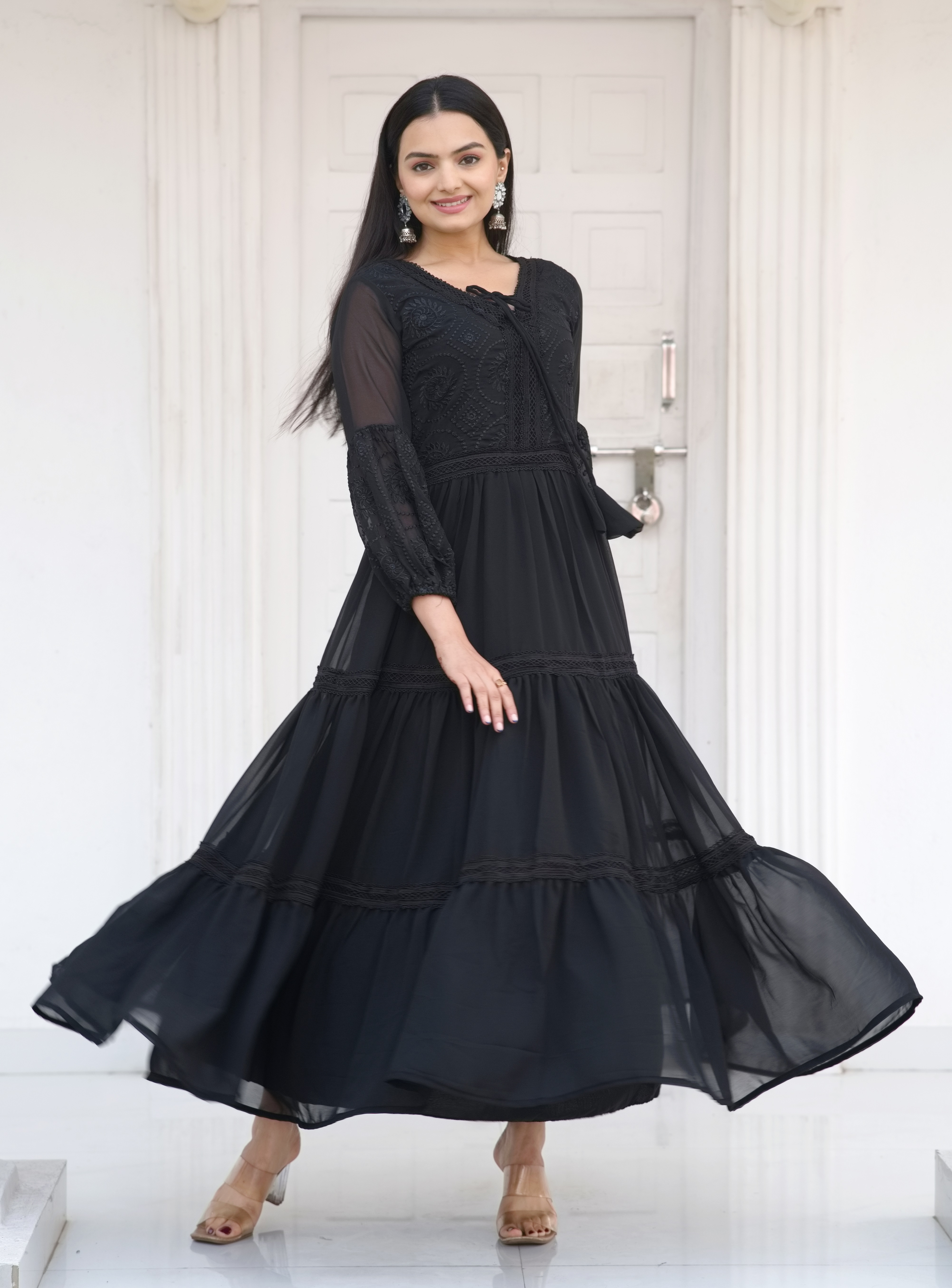 Designer Ethnic Gown Set Fox Georgette Fabric Embroidery Work for Women – Black Color
