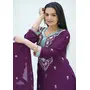 Designer Ethnic Gown Set with Dupatta Chinon Fabric Coding Sequence Embroidery Work for Women – Purple Color