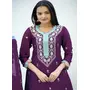 Suit, Fabric : Chinon, Inner : Micro, Work : Coding Sequence Embroidery Work, Top length : 37-38 inch, Stich : S(36), M(38), L(40), XL(42), XXL(44), Sharara, Fabric: Chinon, inner : Micro, Stich :- Full Stich With Elastic, Bottom Length: 40 inch, Sharara Full Flair 3.2 Mtr, Dupata, Fabric : Chinon, Work. : Coding Sequence Embroidery Work, Length : 2.2 meter.