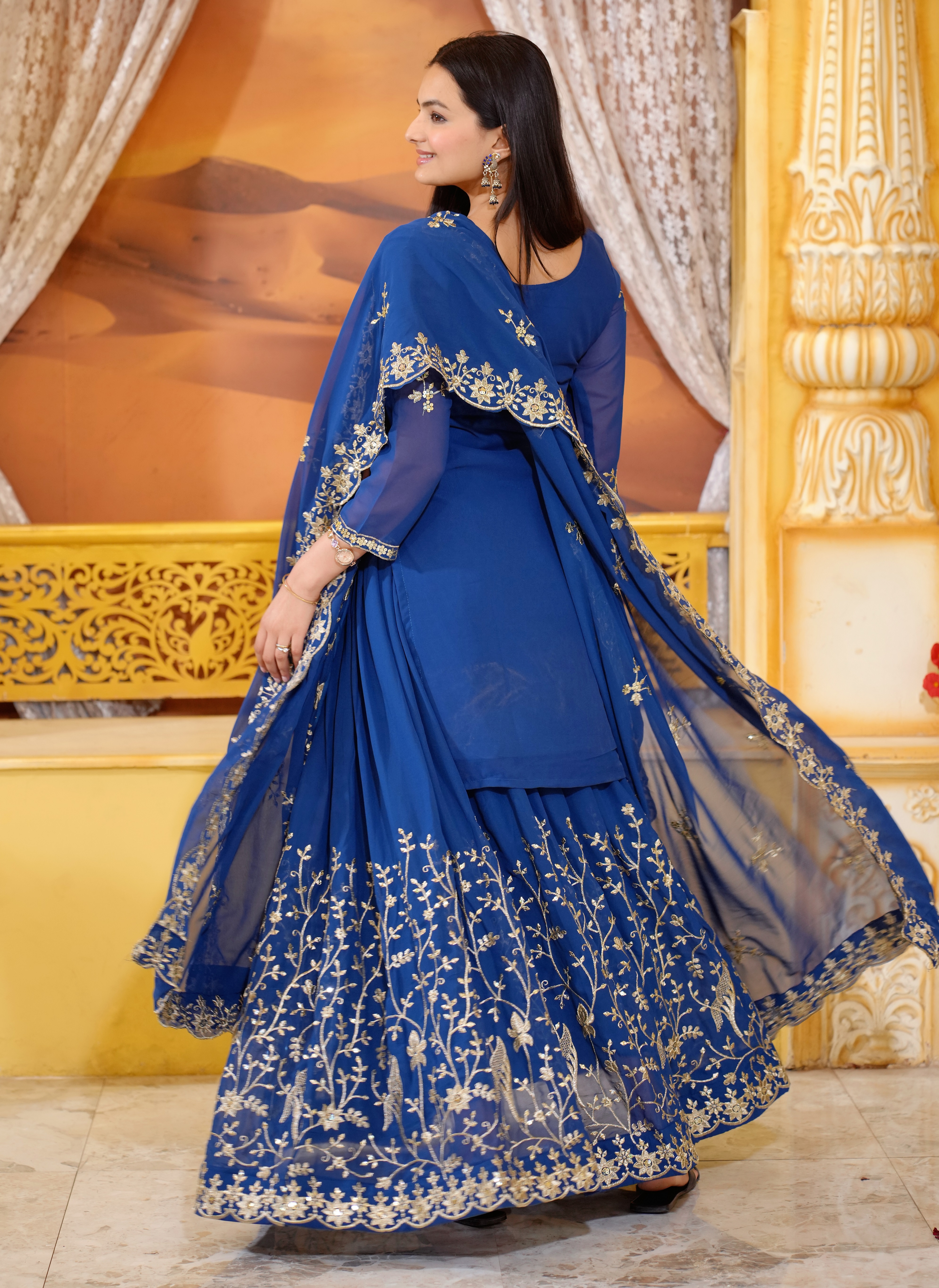 Suit, Fabric : Fox Georgette, Inner : Micro, Work : Sequence Embroidery Work, Top length : 36 inch, Stich : S(36), M(38), L(40), XL(42), XXL(44), Lehenga, Fabric: Georgette, inner : Micro, Stich :- Full Stich With Elastic, Bottom Length: 40 inch, Dupata, Fabric : Georgette, Work. : Sequence Embroidery Work, Length : 2.2 meter.