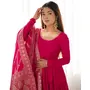 Designer Ethnic Gown Set with Dupatta Heavy Pure Romansilk Chanderi Fabric Fabric Yoke Lace Work for Women – Pink Color