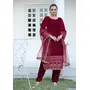 Suit, Fabric : Heavy viscos Velvet, Inner : Micro, Work : Sequence Embroidery Work, Top length : 46 -47 inch, Stich : S(36), M(38), L(40), XL(42), XXL(44), pent, Fabric: Heavy viscos Velvet, Stich :- Full Stich With Elastic, Bottom Length: 40 inch, Dupata, Fabric : Butterfly Net, Work. : Sequence Embroidery Work, Length : 2.2 meter.