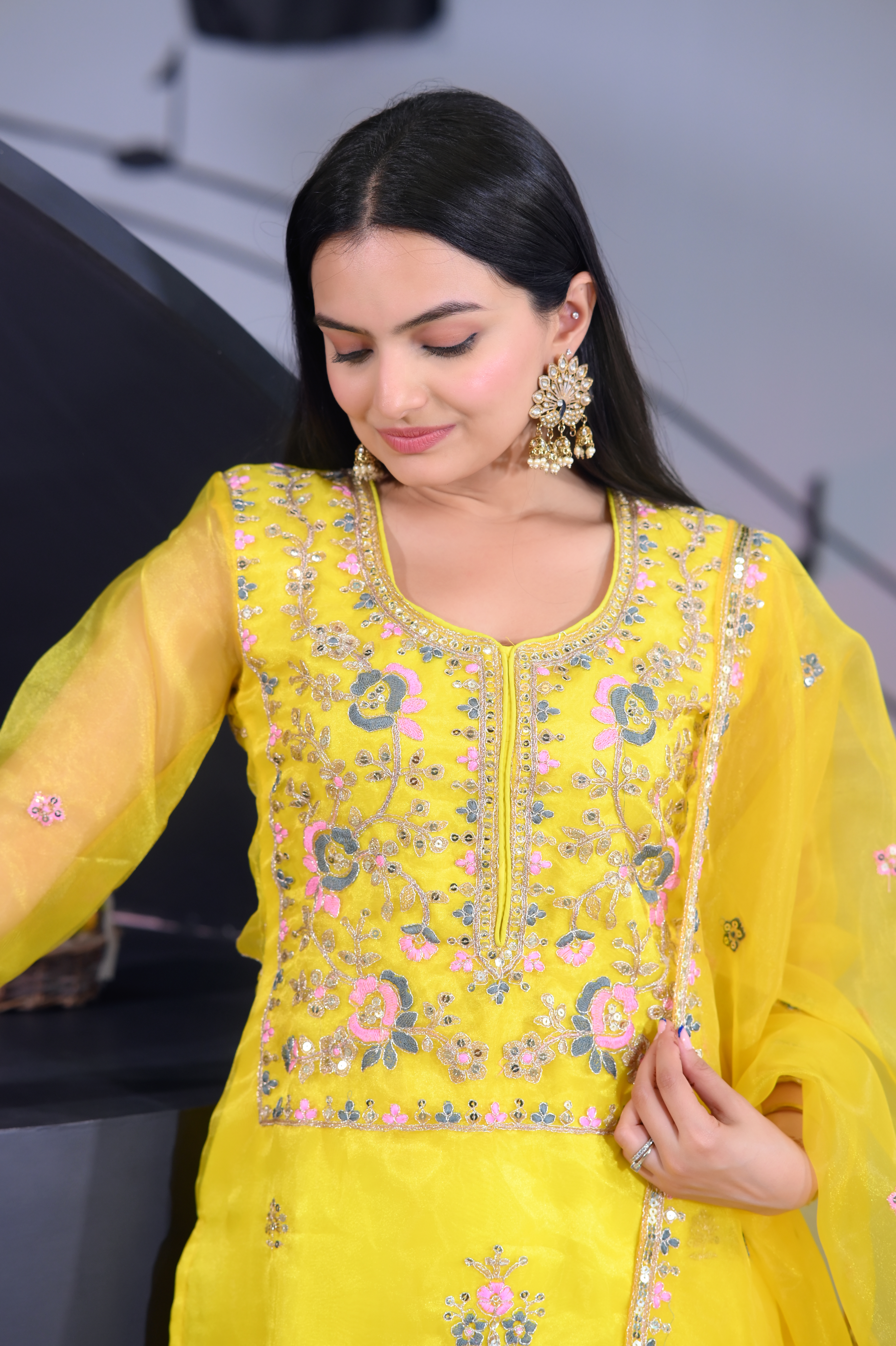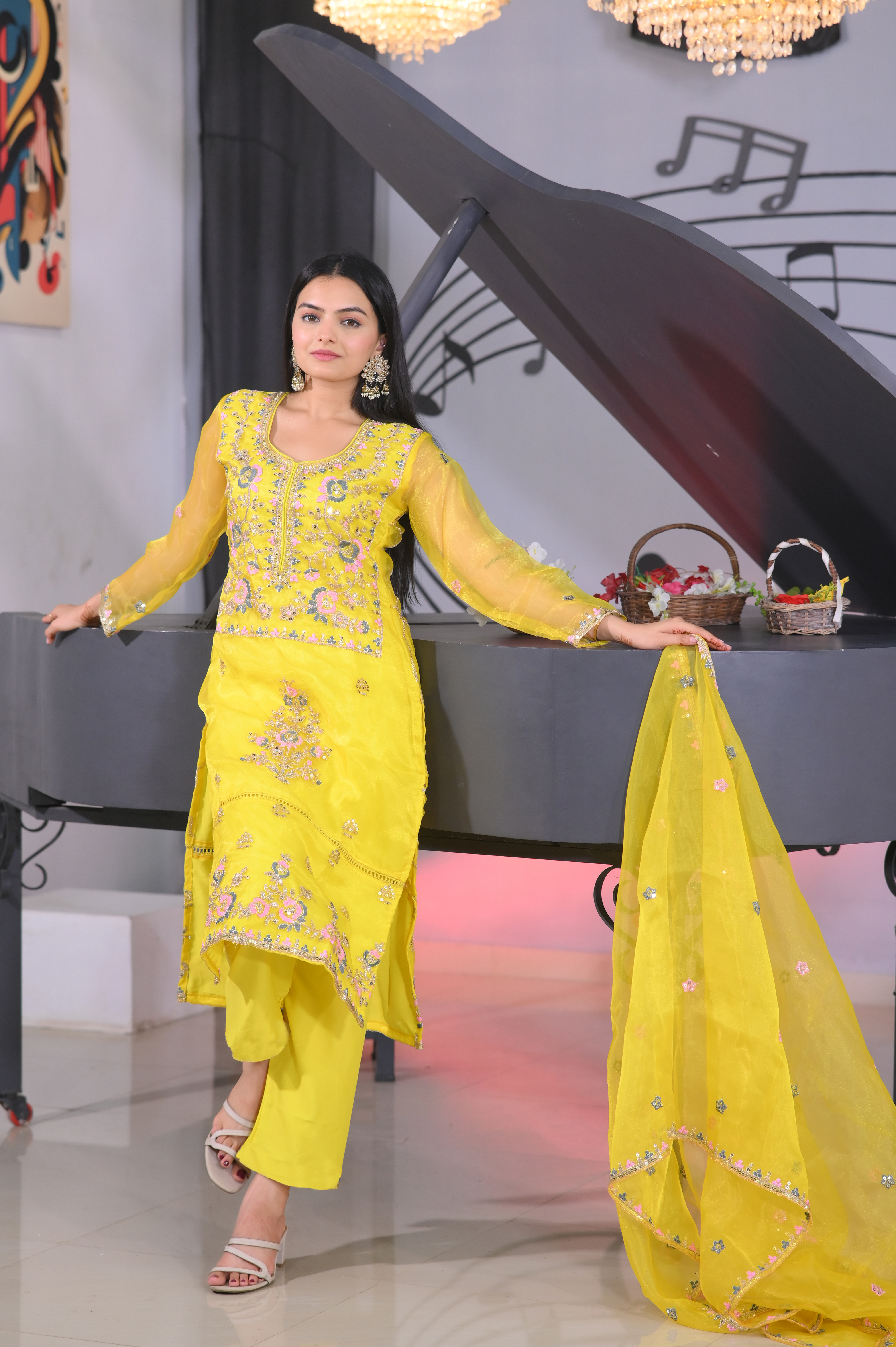 Top, Fabric : organza, Inner : Micro, Work : Coding Embroidery With 5 MM Sequence Work, Top length : 46 inch, Front And Back Both Side Work, Stich : S(36), M(38), L(40), XL(42), XXL(44), Pent, Fabric: Micro, Stich :- Full Stich With Elastic, Bottom Length: 40 inch, Dupata, Fabric : Organza, Work. : Coding Embroidery With 5 MM Sequence Work, Length : 2.2 meter.