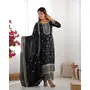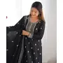 Designer Ethnic Gown Set with Dupatta Pure Chinon Silk Fabric Fabric Beautiful Embroidery Sequence And Jari Work for Women – Black Color