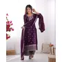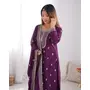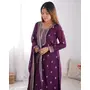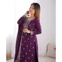 Designer Ethnic Gown Set with Dupatta Pure Chinon Silk Fabric Fabric Beautiful Embroidery Sequence And Jari Work for Women – Wine Color