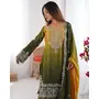 Designer Ethnic Suit Set with Dupatta Chinon Silk Fabric Codeing Dori With Sequnce With Rivet Moti for Women – Mehendi Color