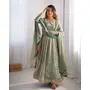 Gown, Fabric : Fandy Silk, Inner : Micro, Work. : Coding with Sequnce work, Stich. : M(38), XL(42), XXL(44), With 3XL margin, Front and Back Both size work, Pent, Fabric : Micro, Work. : Plain, Stich : Full stich upto 44 with elastic, Dupata, Fabric : Fandy Silk, Work : Coding with Thred work, Length : 2.2 meter.