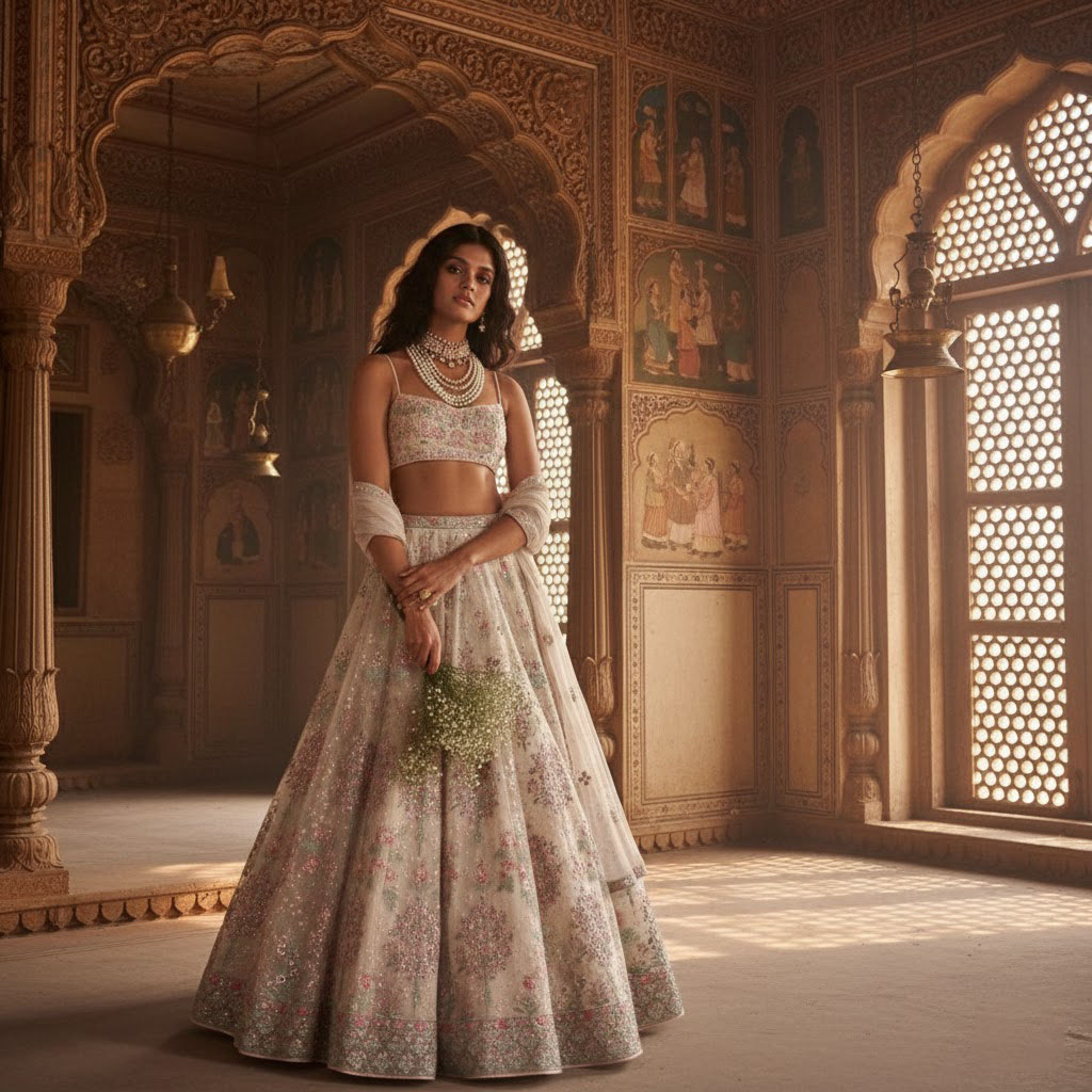 LEHENGA(BOTTOM)FABRIC:- GEORGETTEINNER:- 2 LAIR MICRO FABRICWORK:- 3MM SEQUINS WITH THREAD EMBROIDERY WORKSTITCH:- SEMI STITCHED WITH CANCAN, CANVAS AND HAND MADE TASSELSSIZE:- 42HEIGHT AND 42WAISTFLAIR:- 3.50 METER FLAIR COLOR:- CREAM FABRIC COLOR WITH MULTI THREAD COLOR EMBROIDERYCHOLI(TOP):-FABRIC:- BANGLORI SILKSIZE:- 0.80 METER FABRICWORK:- 3MM SEQUINS WITH THREAD EMBROIDERY WORK STITCH:- UN STITCHED FABRICCOLOR:- CREAM FABRIC COLOR WITH MULTI THREAD COLOR EMBROIDERYDUPATTA:-FABRIC:- GEORGETTEWORK:- 3MM SEQUINS WITH THREAD EMBROIDERY LACE BORDER WORKSIZE:- 2.25 METER DUPATTASTITCH:- FULL STITCHCOLOR:- CREAM FABRIC COLOR WITH MULTI THREAD COLOR EMBROIDERYADDITIONALWASH CARE: - DRY CLEAN ONLYCOLOR: - PRODUCT COLOR MAY SLIGHTLY VARY DUE TO PHOTOGRAPHIC LIGHTNING SOURCES OR YOUR DEVICE DISPLAY SETTINGSTHESE ARE MADE TO ORDER DESIGNER STYLES, HENCE EXPECT A SLIGHT VARIATION FROM THE IMAGE DISPLAYEDIN THE BOX 1 PIECE LEHENGA 1 PIECE DUPATTA 1 PIECE BLOUSE FABRIC (1 SET OF HAND MADE TASSELS)ALTERNATIVEHANDMADE TASSELS MAY DIFFER FROM THE PHOTOS AND VIDEOS. TASSELS WILL BE AVAILABLE AS LONG AS THE CURRENT STOCK LASTS. ALTERNATIVELY, NEW STOCK MAY TAKE SOME TIME TO ARRIVE. WE ARE NOT STRICTLY BOUND TO PROVIDE TASSELS.