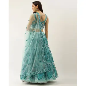 Womens Sky Blue Net Thread Embroidery...