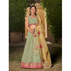 Womens Pista Green Georgette Thread...