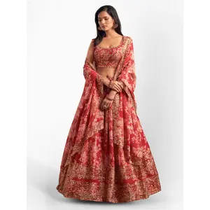 Womens Red Organza Sequence...