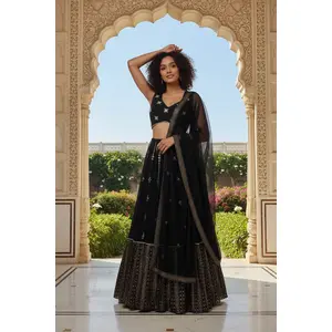 Black Embroidered Georgette Lehenga Set