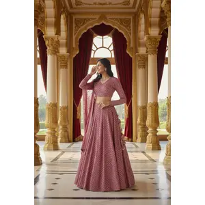 Wine sequins embroidered semi velvet...
