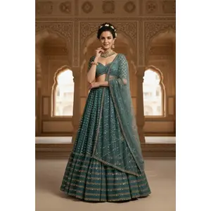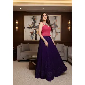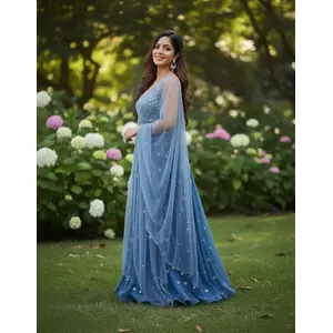 Blue Embroidered Georgette Lehenga Set