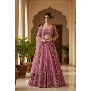 Cream Embroidered Georgette Lehenga Set