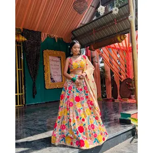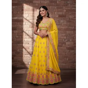 Yellow Embroidered Georgette Lehenga Set