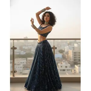 Navy blue lehenga choli with sequins...