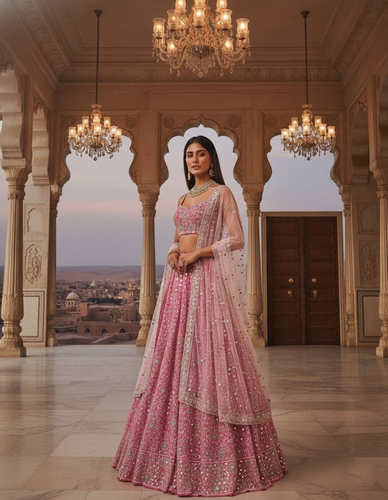 LEHENGA(BOTTOM)FABRIC:- DEVSENA SILKINNER:- MICROWORK:- 3MM SEQUINS, JARI AND DORI WITH PAPER MIRROR EMBROIDERY WORKSTITCH:- SEMI STITCHED(WITH CANCAN AND CANVAS)SIZE:- 42HEIGHT AND 42WAISTFLAIR:- 3.25 TO 3.50 METER FLAIRCOLOR:- PINK COLOR CHOLI(TOP)FABRIC:- DEVSENA SILKSIZE:- 0.80 METER FABRICWORK:- 3MM SEQUINS, JARI AND DORI WITH PAPER MIRROR EMBROIDERY WORKSTITCH:- UN STITCHED FABRICCOLOR:- PINK COLOR EBROIDERY WORK SIZE:- FRONT HEIGHT-14 WIDTH-20, , BACK HEIGHT-14 WIDTH-20DUPATTAFABRIC:- NETWORK:- 3MM 3MM SEQUINS WITH JARI EMBROIDERY WORKSIZE:- 2.25 METER DUPATTASTITCH:- FULL STITCHEDCOLOR:- OFF WHITEADDITIONALWASH CARE: - DRY CLEAN ONLYCOLOR: - PRODUCT COLOR MAY SLIGHTLY VARY DUE TO PHOTOGRAPHIC LIGHTNING SOURCES OR YOUR DEVICE DISPLAY SETTINGSTHESE ARE MADE TO ORDER DESIGNER STYLES, HENCE EXPECT A SLIGHT VARIATION FROM THE IMAGE DISPLAYEDIN THE BOX 1 PIECE LEHENGA 1 PIECE DUPATTA 1 PIECE BLOUSE FABRIC.