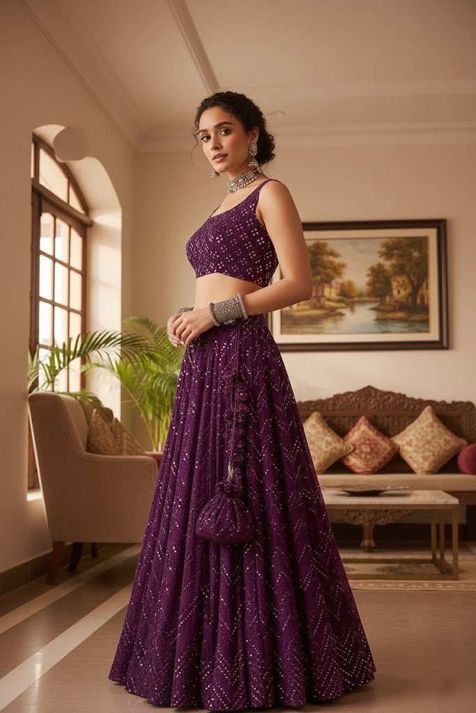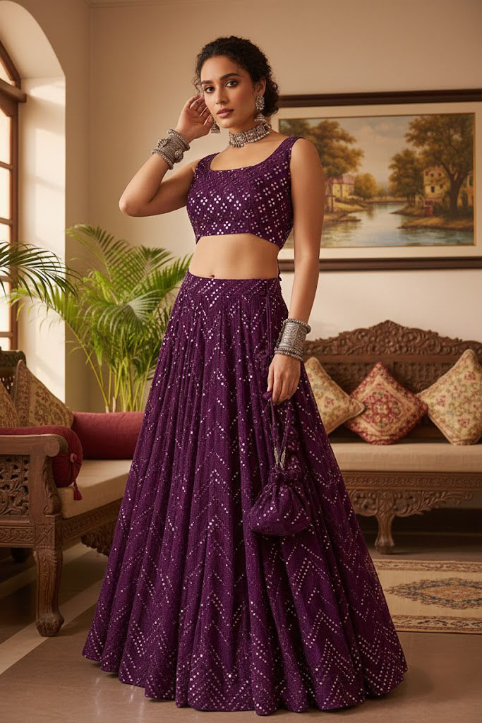 LEHENGA(BOTTOM)FABRIC: - FAUX GEORGETTEINNER: - MICRO FABRICWORK: - 3MM SEQUINS WITH THREAD EMBROIDERY WORKSTITCH: - SEMISTITCHED (WITH CANVAS)SIZE: - 42HEIGHT AND 42WAISTFLAIR: - 3 METERCHOLI(TOP)FABRIC: - FAUX GEORGETTEINNER: - MICROSIZE: - 0.80 METER FABRICWORK: - 3MM SEQUINS WITH THREAD EMBROIDERY WORKSTITCH: - UNSTITCHED FABRICEMBROIDERY WORK SIZE: - FRONT HEIGHT-14 WIDTH-18, , , BACK HEIGHT-14 WIDTH-18, , , DUPATTAFABRIC: - NETWORK: - DUE DROP WORKSIZE: - 2.25 METER DUPATTASTITCH: - FULL STITCHEDADDITIONALWASH CARE: - DRY CLEAN ONLYCOLOR: - PRODUCT COLOR MAY SLIGHTLY VARY DUE TO PHOTOGRAPHIC LIGHTNING SOURCES OR YOUR DEVICE DISPLAY SETTINGSTHESE ARE MADE TO ORDER DESIGNER STYLES, HENCE EXPECT A SLIGHT VARIATION FROM THE IMAGE DISPLAYED.