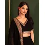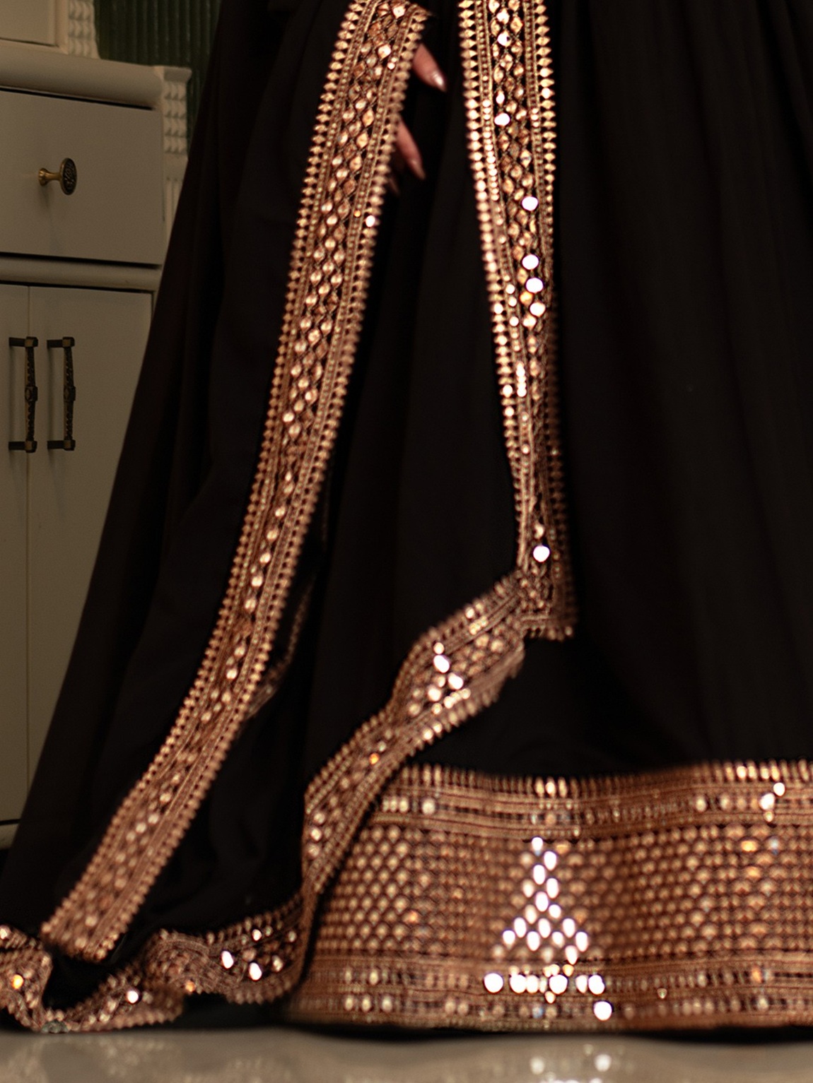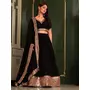 Womens Black Faux Georgette Sequins Work Lehenga Set
