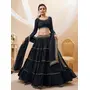 Womens Black Georgette Lehariya Lehenga Set