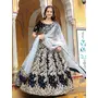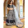 Elevate your ethnic look with this navy blue velvet lehenga featuring zari work work. Designed for festive occasions and celebrations, it offers a graceful flow and timeless appeal.Crafted from lightweight velvet fabric with a semi-stitched finish, this lehenga ensures comfort and easy customization. Dry clean recommended.