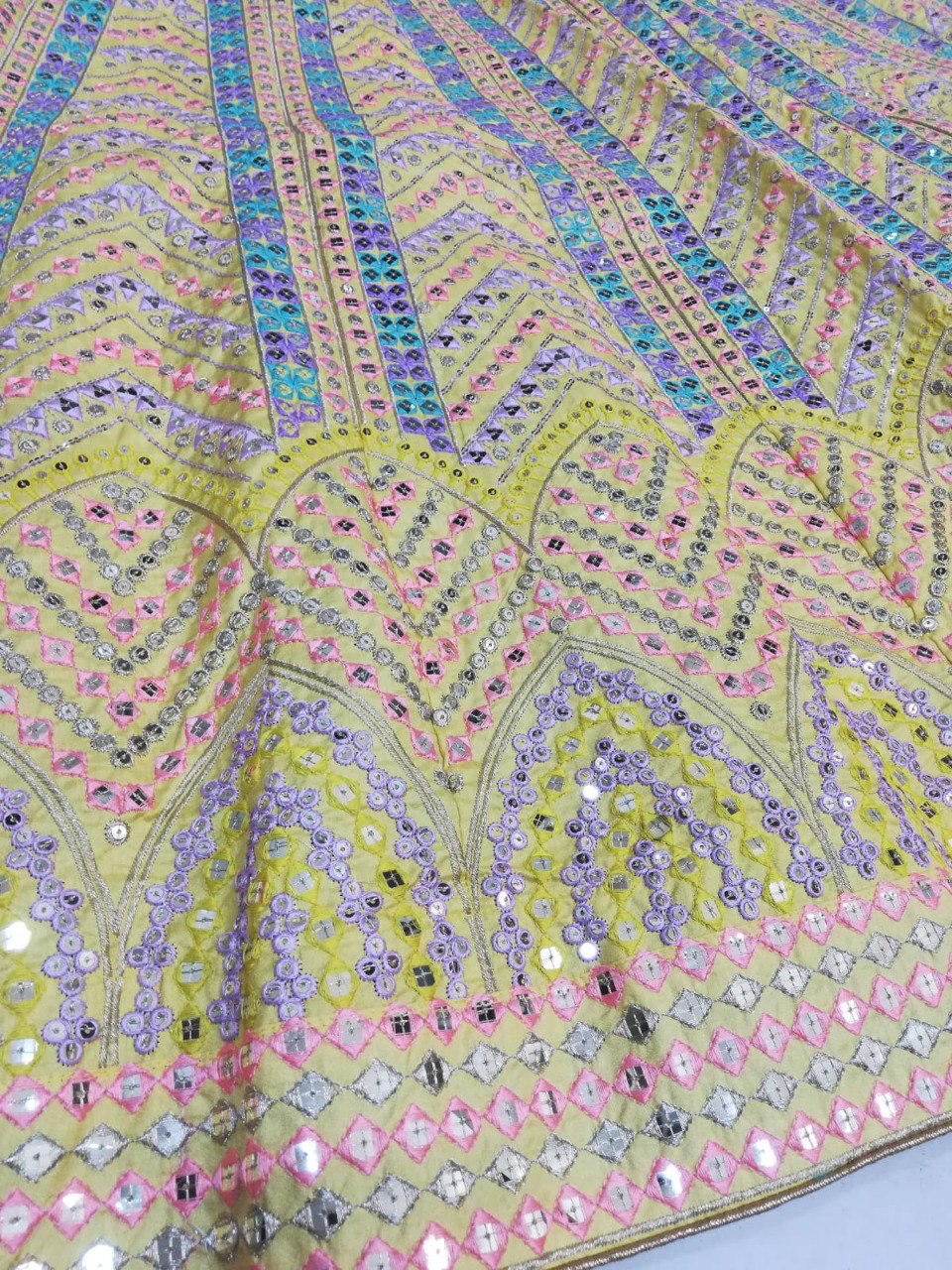 Yellow Sequin Thread Embroidered Dola Silk Lehenga Set