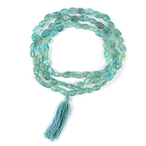 Hand Made Natural Crystal Stone Apatite Mala / Necklace | Length : 26 Inch. | Shape : Oval | Charged By Reiki Grand Master & Vastu Expert