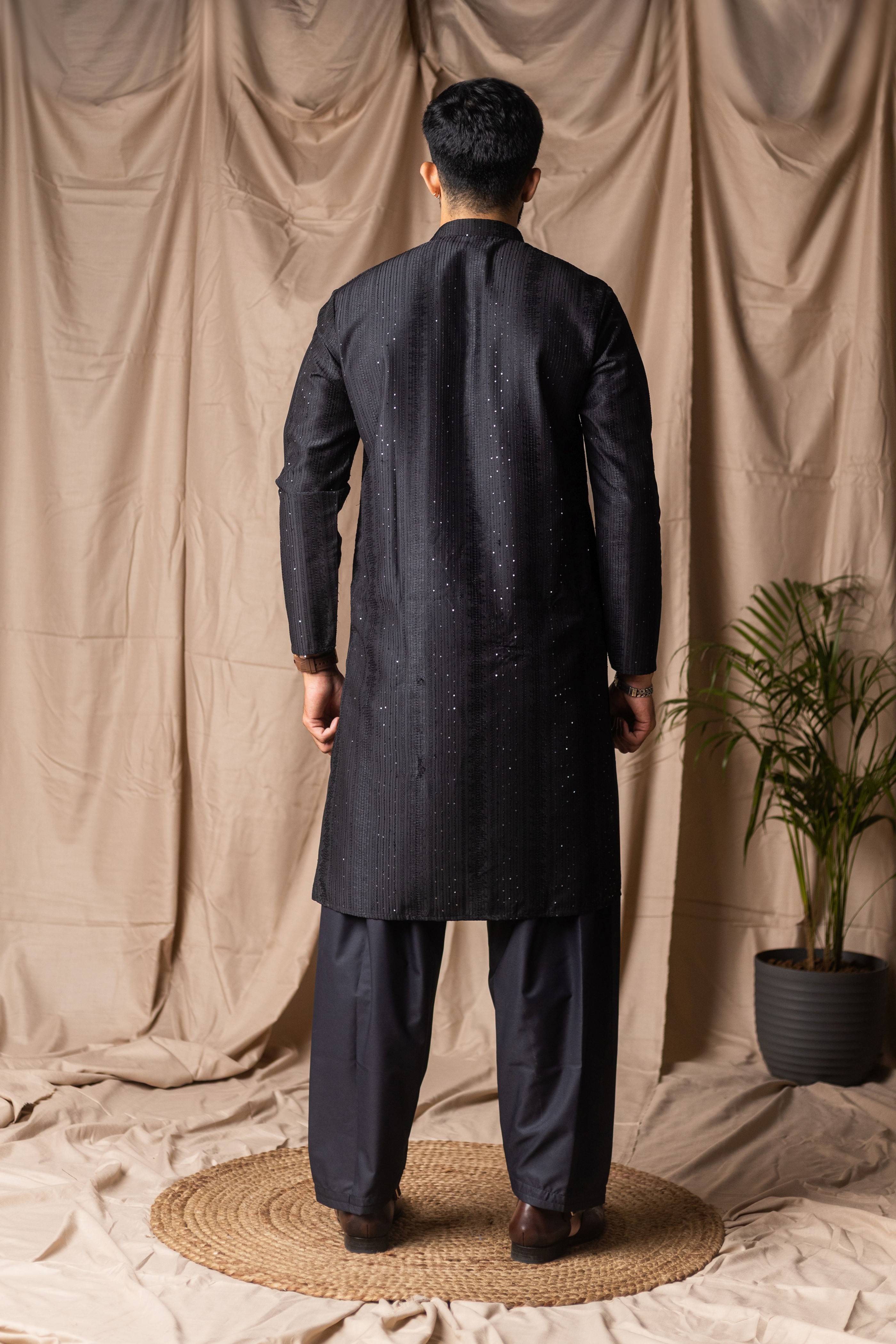 Black Color Rayon Fabric Festive Wear Ethnic Men's Embroidered Kurta Payjama