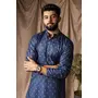 Blue Color Blended Linen Designer Printed Stylish Kurta Payjama For Mens'