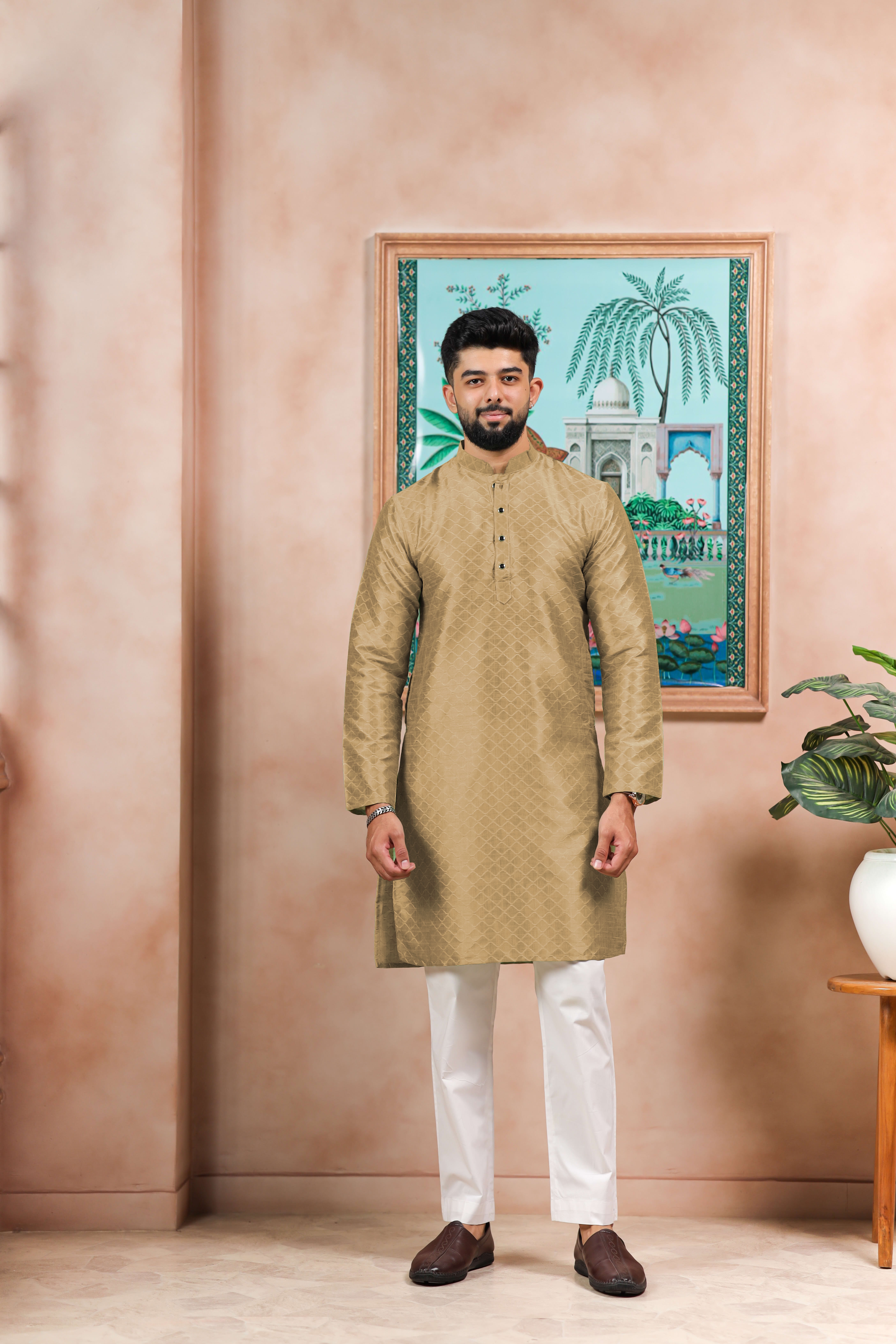Chikoo Color Graceful Partywear Kurta Payjama For Mens Ceremonial Looks