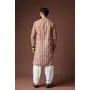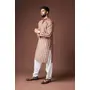 Cream Color Blended Linen Designer Printed Stylish Kurta Payjama For Mens'