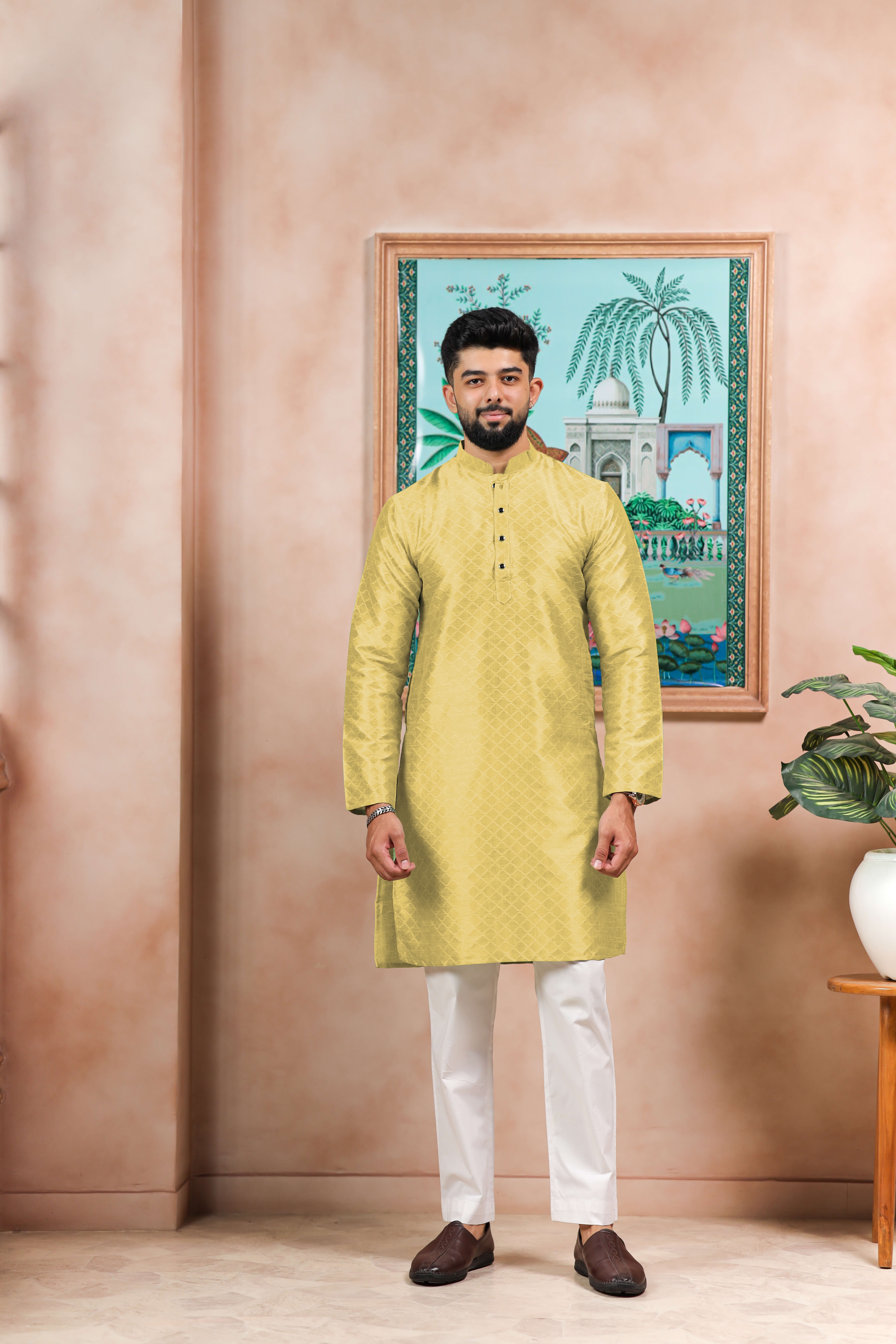 Lemon Color Graceful Partywear Kurta Payjama For Mens Ceremonial Looks