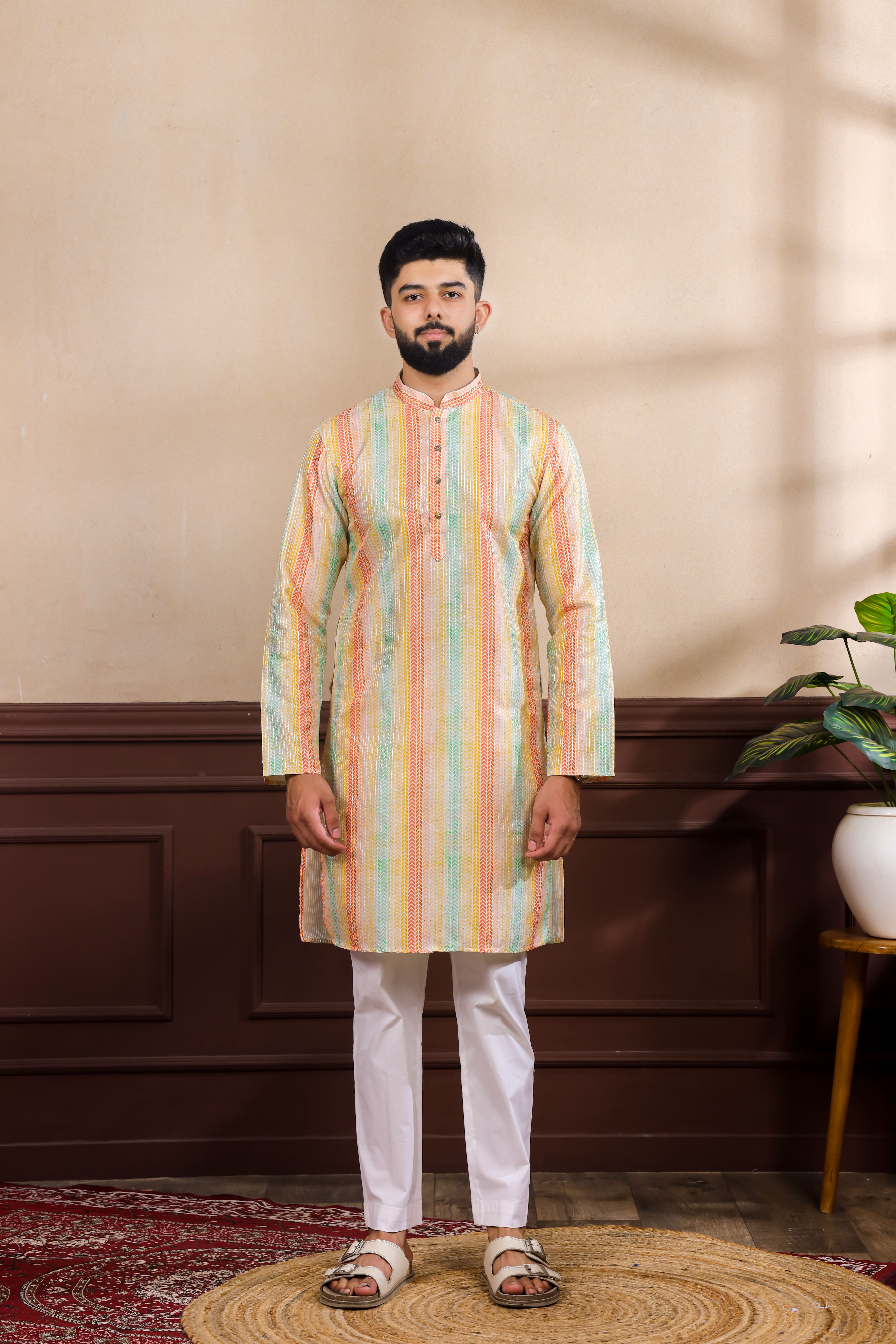 Multy Color Beautiful Art Silk Fabric Smart Print Designer Kurta Payjama