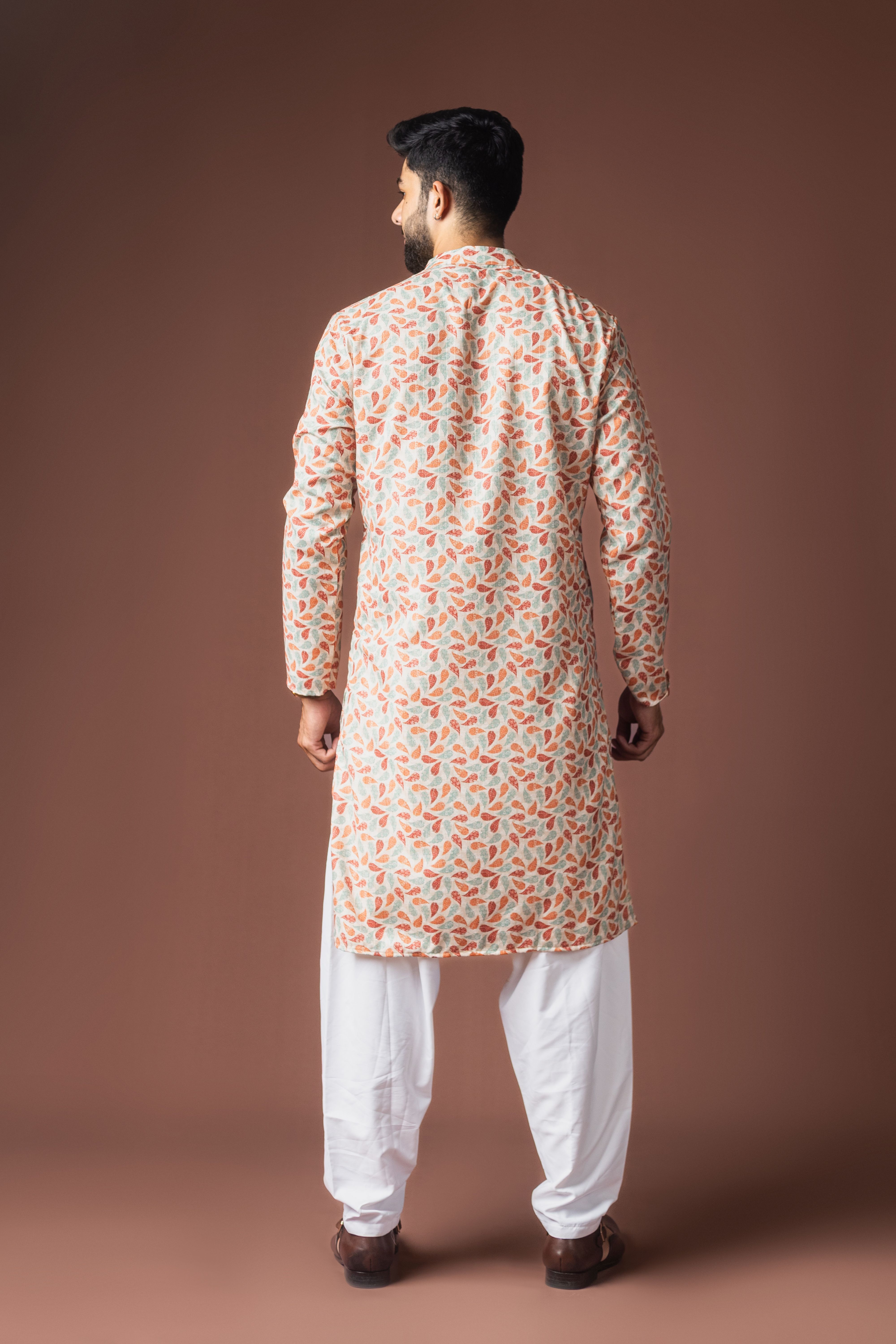 Multy Color Blended Linen Fabric Designer Printed Festive Wear Men's Kurta Payjama