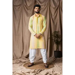 Yellow Color Rayon Fabric Festive...