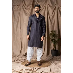 Black Color Blended Linen Designer...