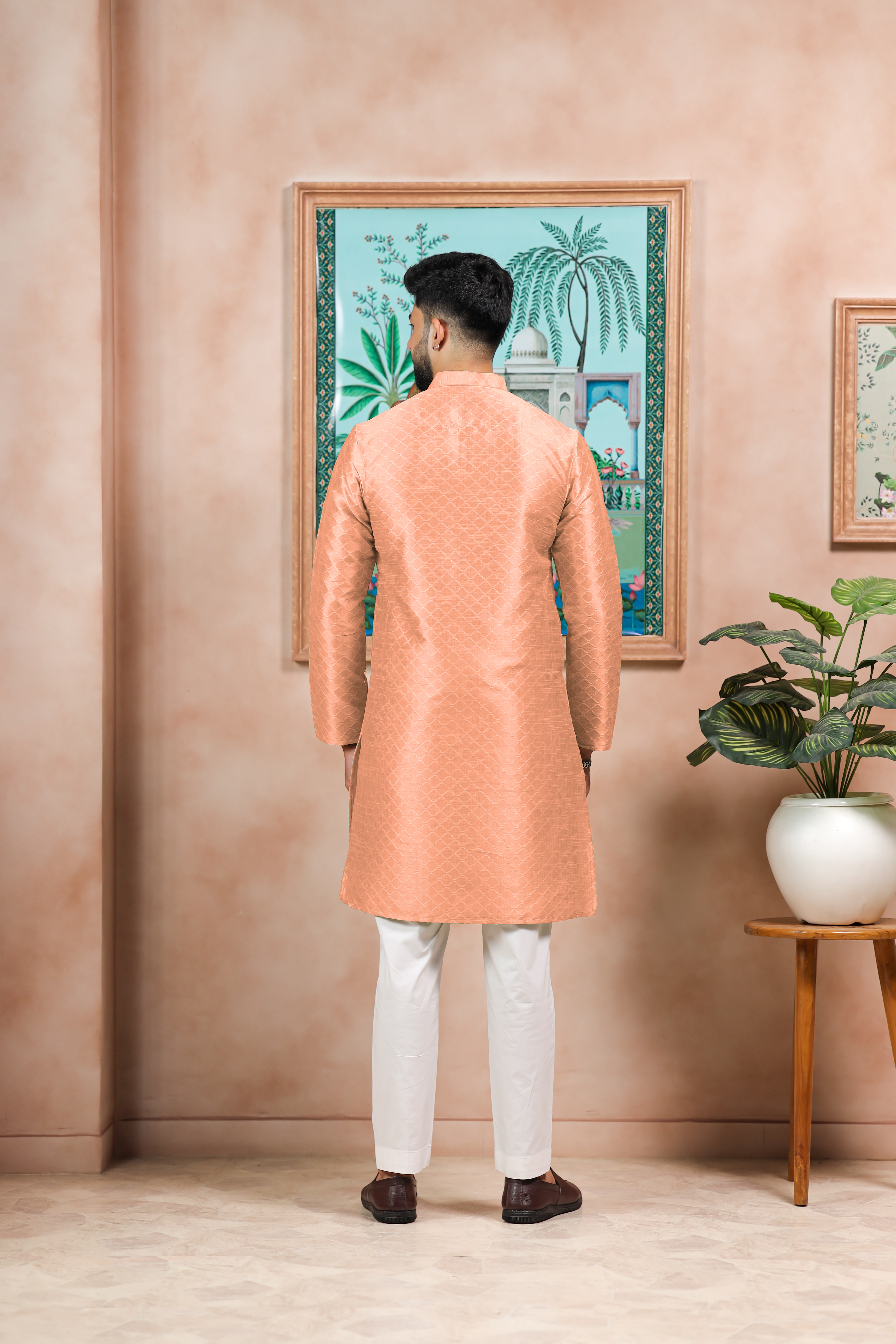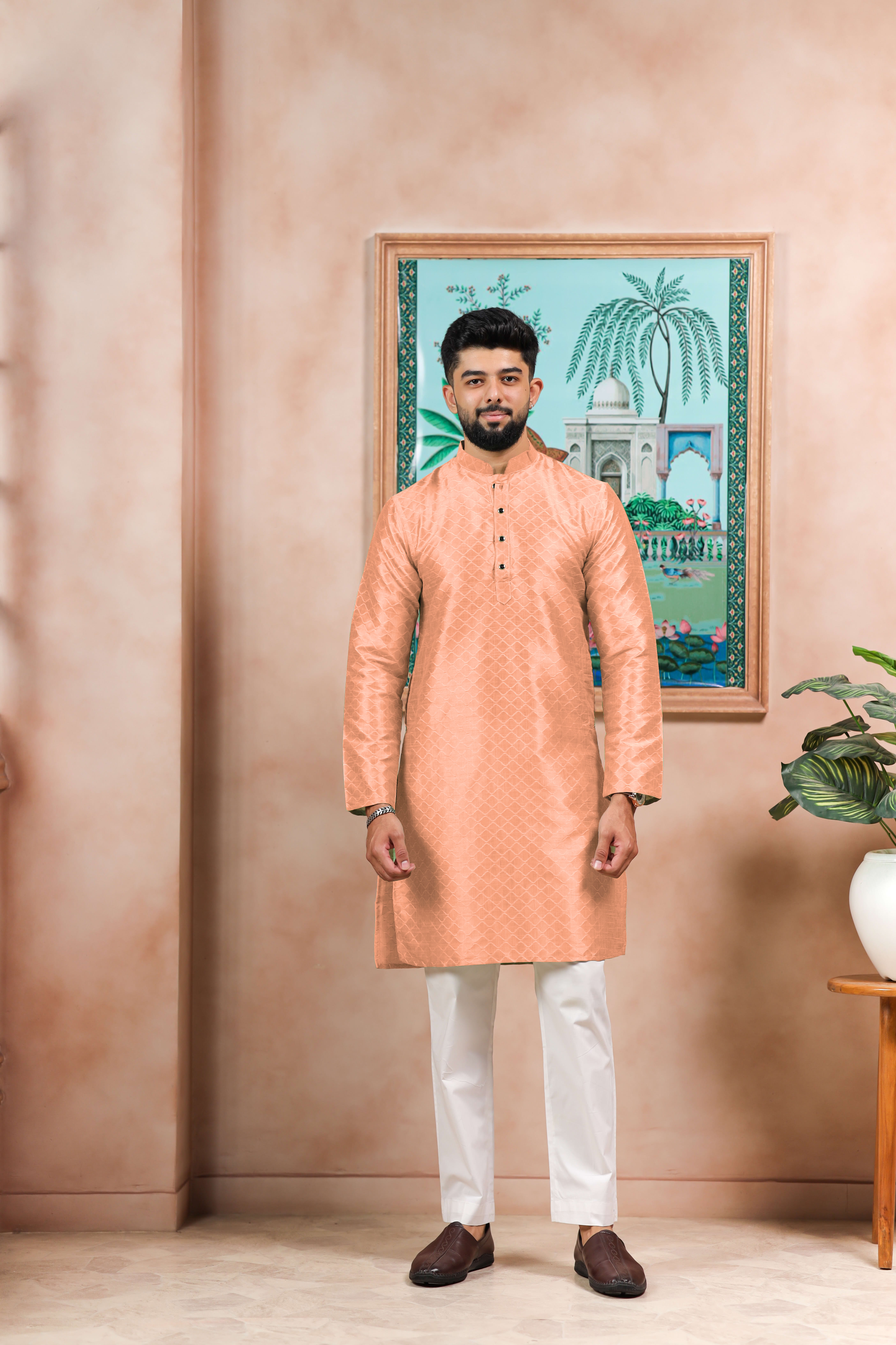 Peach Color Graceful Partywear Kurta Payjama For Mens Ceremonial Looks