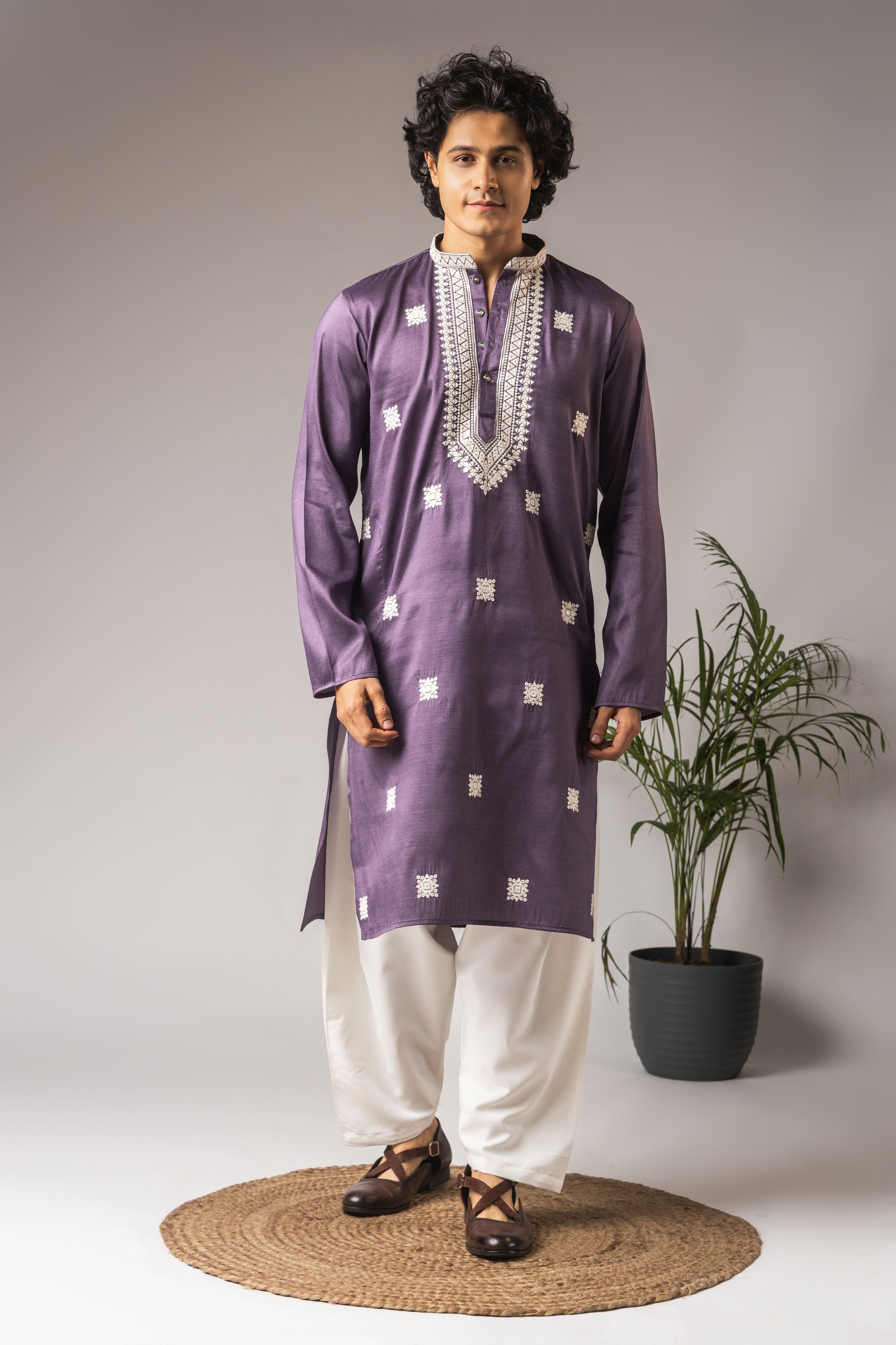 Purple Color Super SIlk Fabric Designer Ceremonial Kurta Payjama For Men's
