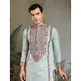 Sky Blue Color Viscose Silk Fabric Designer Embroidered Kurta For Mens