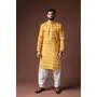 Yellow Color Blended Linen Fabric Designer Printed Festive Wear Men's Kurta Payjama
