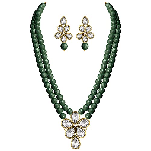 I Jewels 18k Gold Plated Indian Wedding Bollywood Kundan & Pearl Studded Necklace Jewellery Set For Women (ML311)