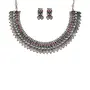 I Jewels 18K Silver Oxidised Indian Traditional Coin Necklace Jewellery With Earrings For Women & Girls (MC062-63) (Style5)