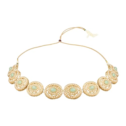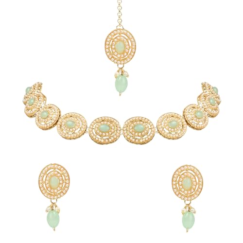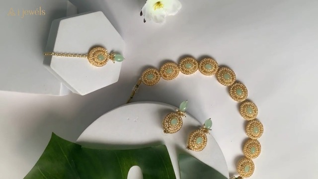 This set includes matching earrings and a Maang Tikka each meticulously designed to harmonize with the necklace. Together they create a harmonious and regal look. The Maang Tikka adds a touch of traditional charm making it the perfect choice for weddings festivals and cultural ceremonies. Whether it's a wedding festival or a special gathering this jewelry set is designed to make you stand out. Its timeless charm effortlessly elevates any outfit making it the perfect choice for women and girls who appreciate both tradition and sophistication.