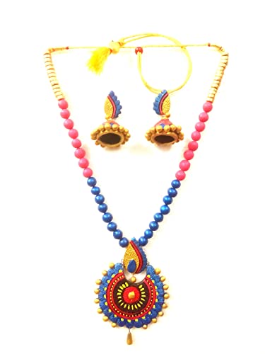 100% handmade terracotta lightHand Painted jewellery set for women. This jewellery set is perfect for any occasion like party wedding casual office outdoor travel function etc. Acrylic paint of this jewellery avoids fading. Made up of natural clay makes it eco friendly . This jewellery is perfectly designed to match with traditional Indian wear.